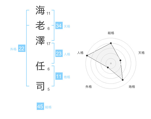 海老澤 任司さんの総格は45画の4点!