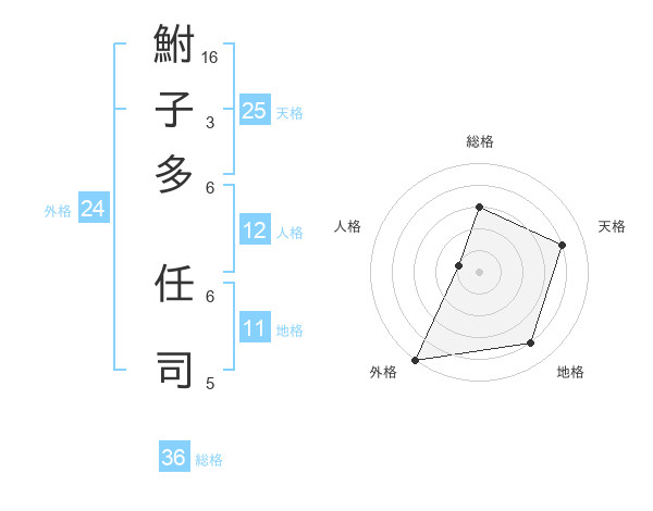 鮒子多 任司さんを姓名の画数から五運を鑑定
