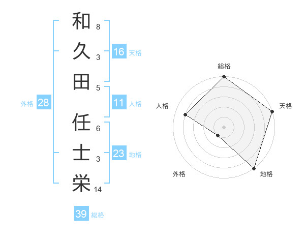 和久田 任士栄さんを姓名の画数から五運を鑑定