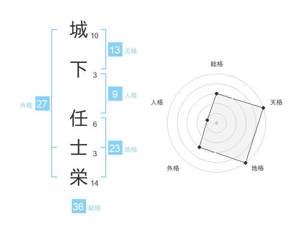 城下 任士栄さんを姓名の画数から五運を鑑定