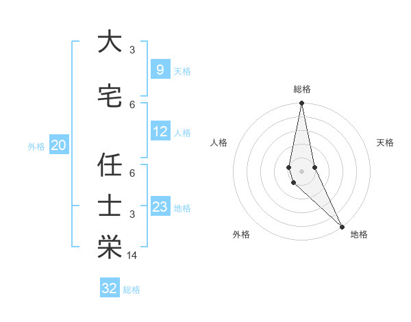 大宅 任士栄さんを姓名の画数から五運を鑑定