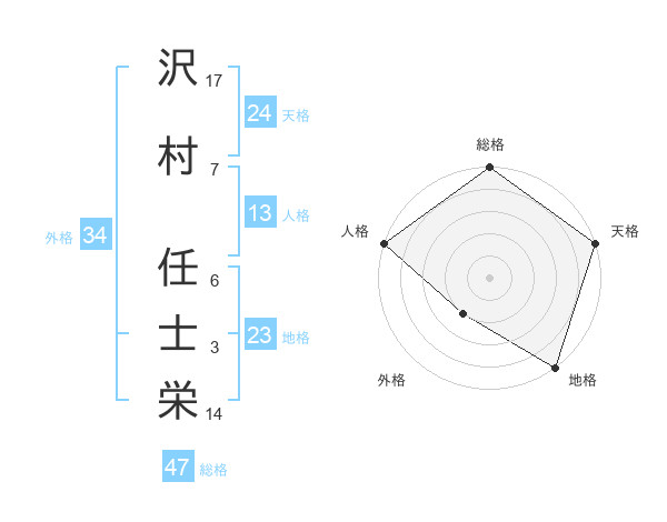 沢村 任士栄さんを姓名の画数から五運を鑑定