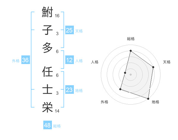 鮒子多 任士栄さんの総格は48画の4点!