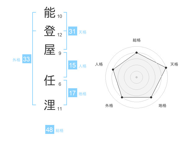 能登屋 任浬さんを姓名の画数から五運を鑑定
