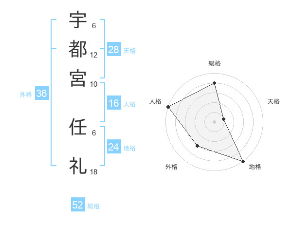 宇都宮 任礼さんを姓名の画数から五運を鑑定