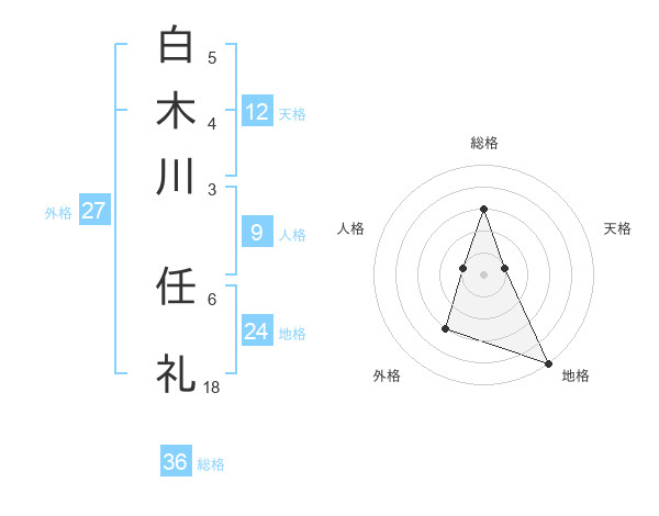 白木川 任礼さんの総格は36画の3点!