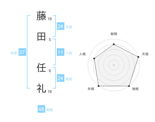 藤田 任礼さんを姓名の画数から五運を鑑定