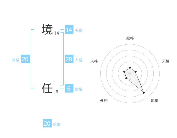 境 任さんの総格は20画の1点!