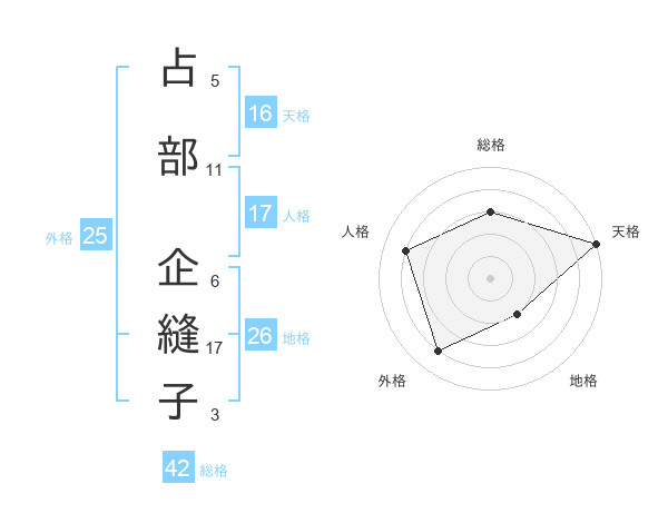 占部 企縫子さんを姓名の画数から五運を鑑定