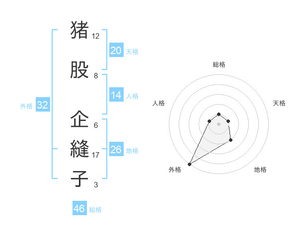 猪股 企縫子さんを姓名の画数から五運を鑑定