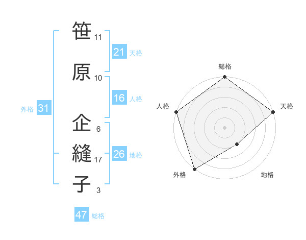 笹原 企縫子さんの総格は47画の5点