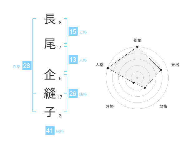 長尾 企縫子さんを姓名の画数から五運を鑑定