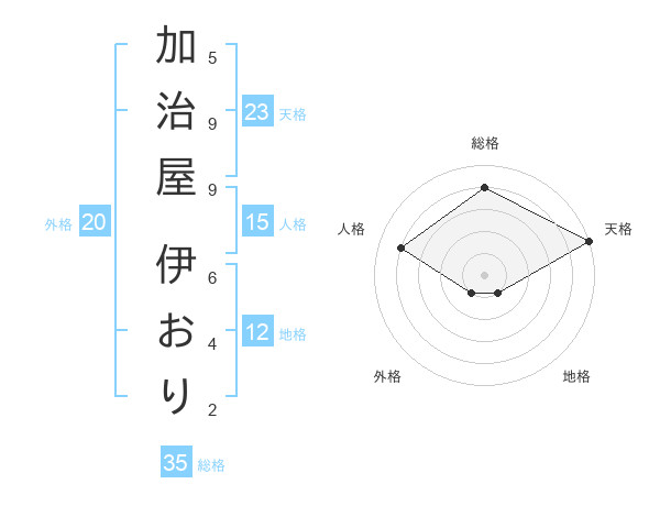 加治屋 伊おりさんを姓名の画数から五運を鑑定