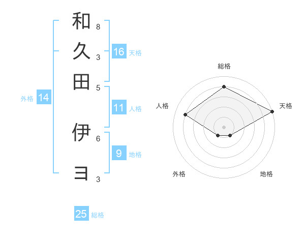 和久田 伊ヨさんの総格は25画の4点!
