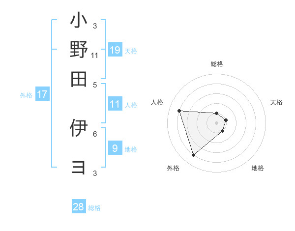 小野田 伊ヨさんを姓名の画数から五運を鑑定