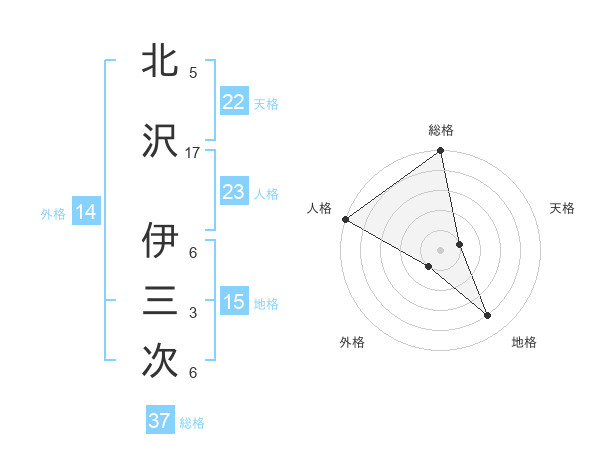北沢 伊三次さんを姓名の画数から五運を鑑定