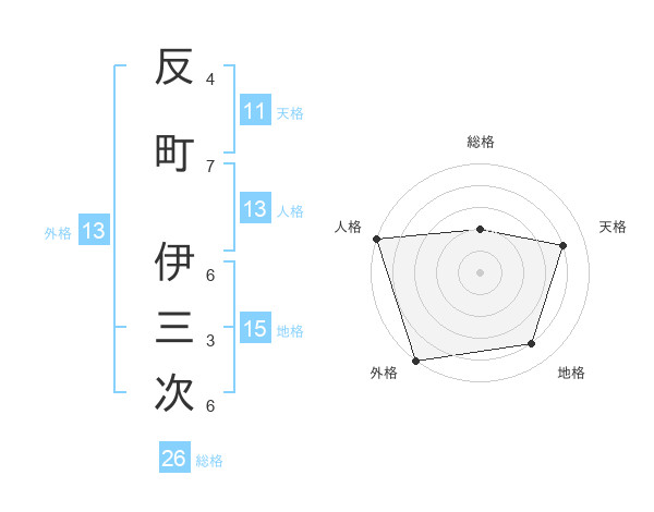 反町 伊三次さんを姓名の画数から五運を鑑定