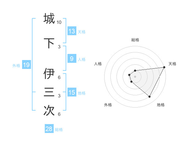 城下 伊三次さんを姓名の画数から五運を鑑定
