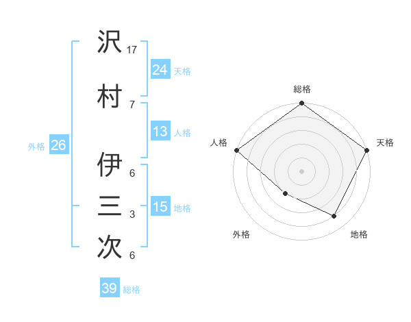 沢村 伊三次さんを姓名の画数から五運を鑑定
