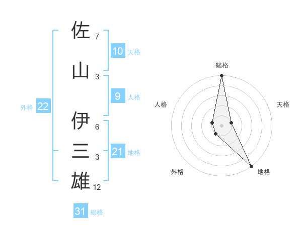 佐山 伊三雄さんを姓名の画数から五運を鑑定