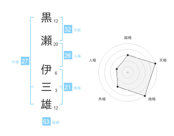 黒瀬 伊三雄さんの総格は53画の3点!