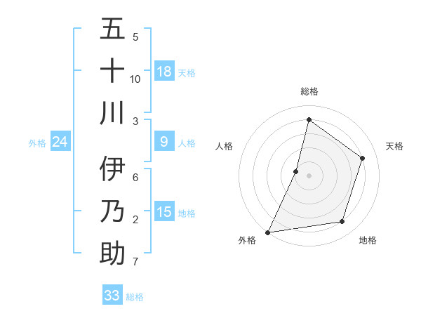 五十川 伊乃助さんを姓名の画数から五運を鑑定