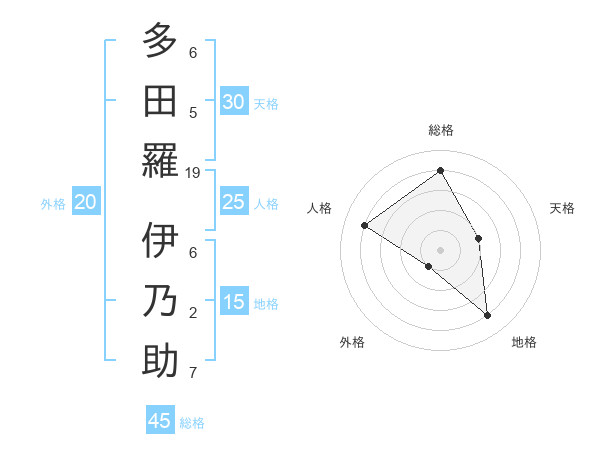 多田羅 伊乃助さんを姓名の画数から五運を鑑定