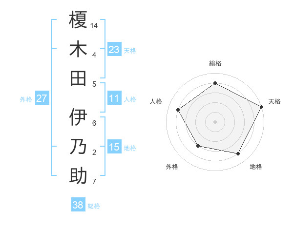 榎木田 伊乃助さんの天格は23画の5点!