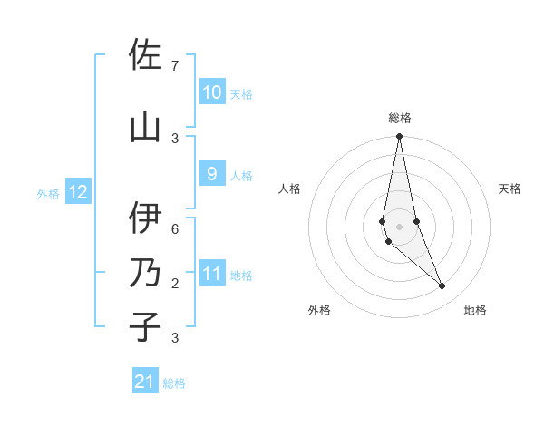 佐山 伊乃子さんを姓名の画数から五運を鑑定
