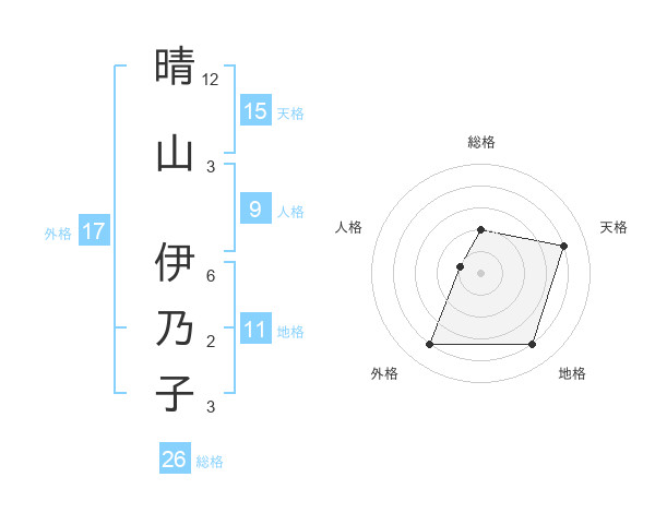 晴山 伊乃子さんの天格は15画の4点!