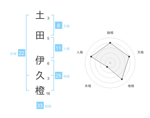 土田 伊久橙さんを姓名の画数から五運を鑑定