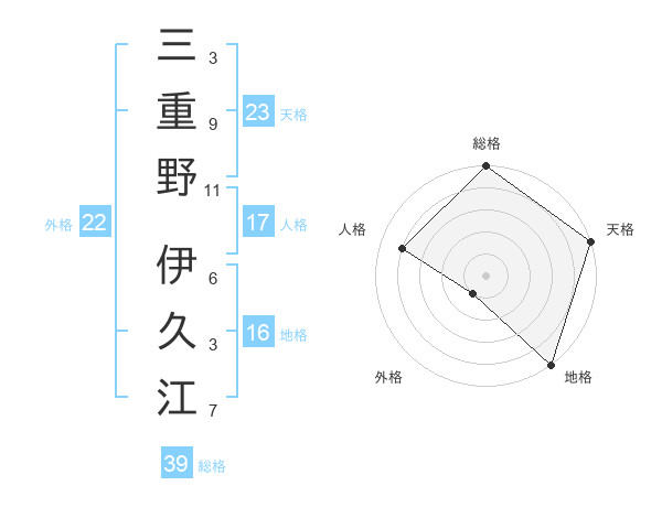三重野 伊久江さんを姓名の画数から五運を鑑定