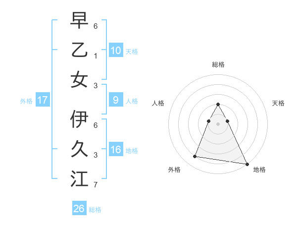 早乙女 伊久江さんを姓名の画数から五運を鑑定