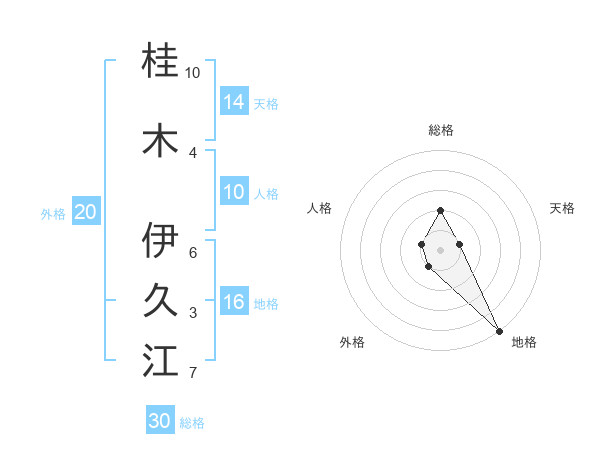 桂木 伊久江さんを姓名の画数から五運を鑑定
