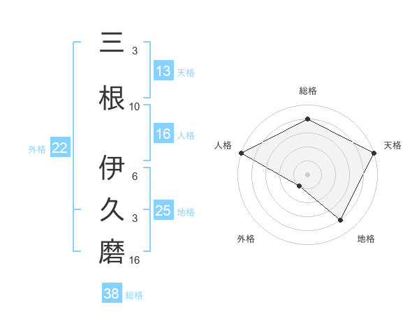 三根 伊久磨さんを姓名の画数から五運を鑑定