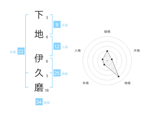 下地 伊久磨さんを姓名の画数から五運を鑑定