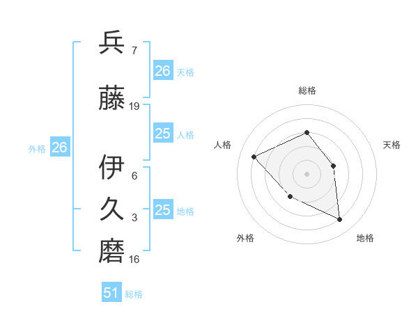 兵藤 伊久磨さんを姓名の画数から五運を鑑定