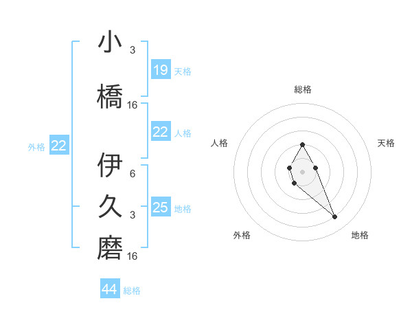 小橋 伊久磨さんを姓名の画数から五運を鑑定