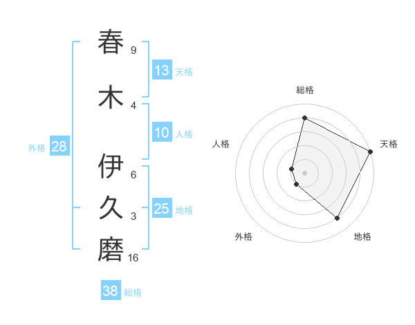 春木 伊久磨さんを姓名の画数から五運を鑑定