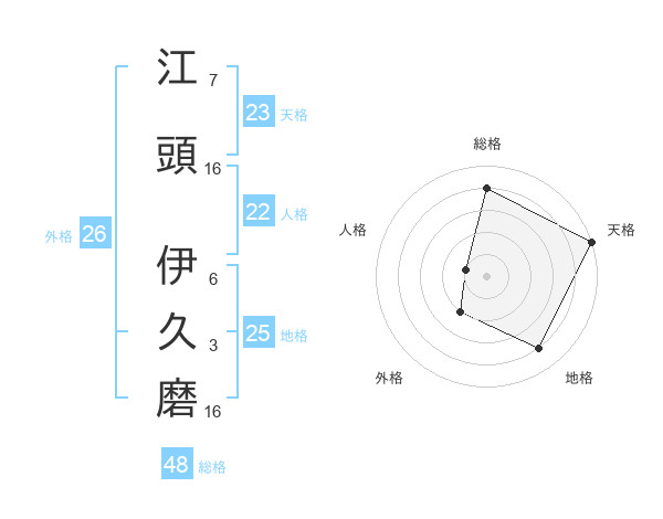 江頭 伊久磨さんを姓名の画数から五運を鑑定