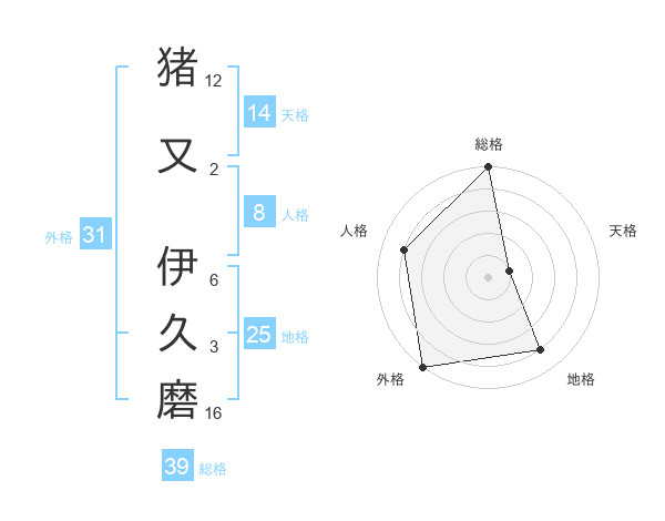 猪又 伊久磨さんを姓名の画数から五運を鑑定