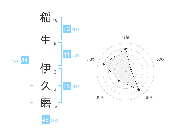 稲生 伊久磨さんを姓名の画数から五運を鑑定