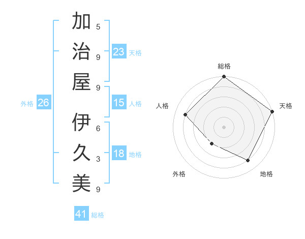 加治屋 伊久美さんの総格は41画の5点!