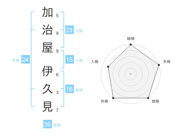 加治屋 伊久見さんを姓名の画数から五運を鑑定