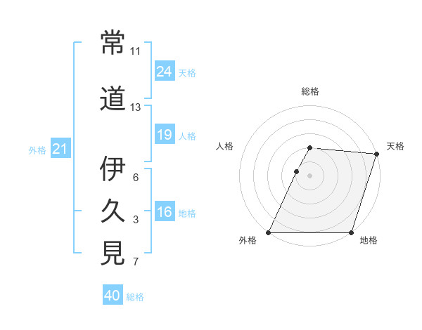 常道 伊久見さんを姓名の画数から五運を鑑定