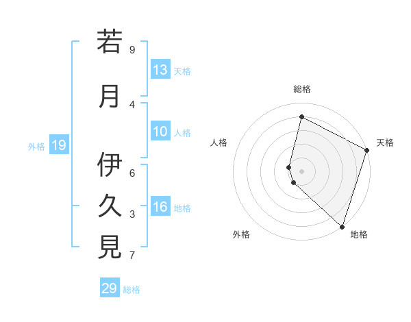 若月 伊久見さんを姓名の画数から五運を鑑定