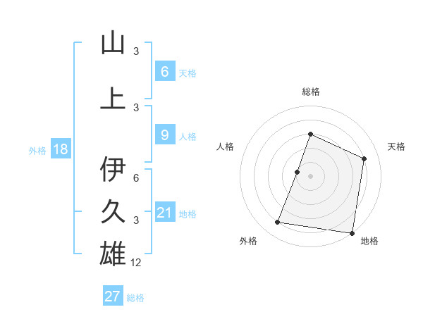山上 伊久雄さんを姓名の画数から五運を鑑定