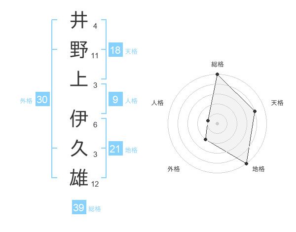 井野上 伊久雄さんを姓名の画数から五運を鑑定