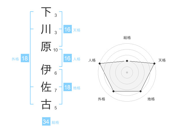 下川原 伊佐古さんの天格は16画の5点
