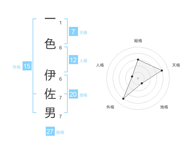 一色 伊佐男さんを姓名の画数から五運を鑑定